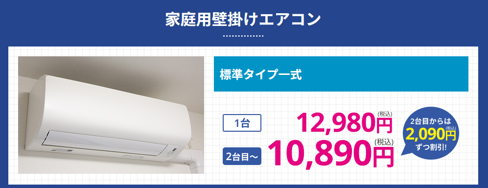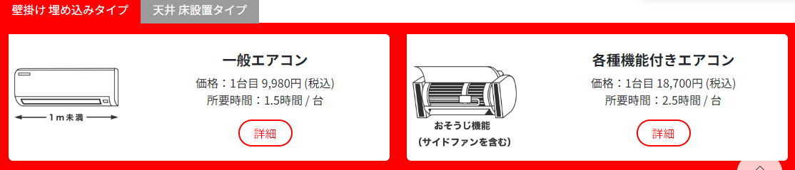 | オプション | 室外機 3,300円/台 大型室外機 18,700円/台 防カビ・抗菌コート 2,750円/台 |
