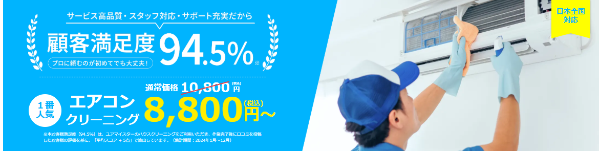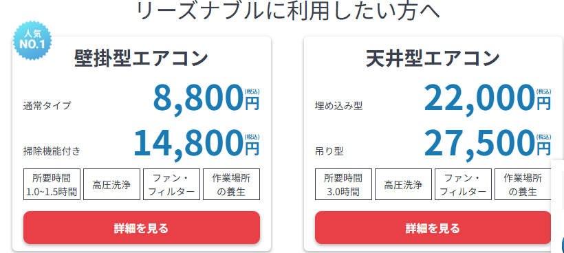 このサイトでは【料金の安さ】・【作業品質】・【保証】・【対応エリア】・【口コミ】などから調査して特に評価の高いエアコンクリーニング業者おすすめTOP3をまとめてるので参考にして頂けたらと思います♪